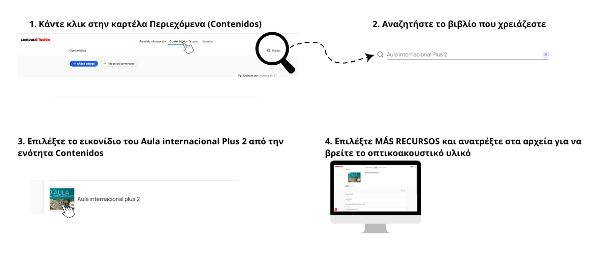 Τα ακουστικά αρχεία και τα video για όλα τα προϊόντα του Aula internacional Plus 2 Libro del alumno.