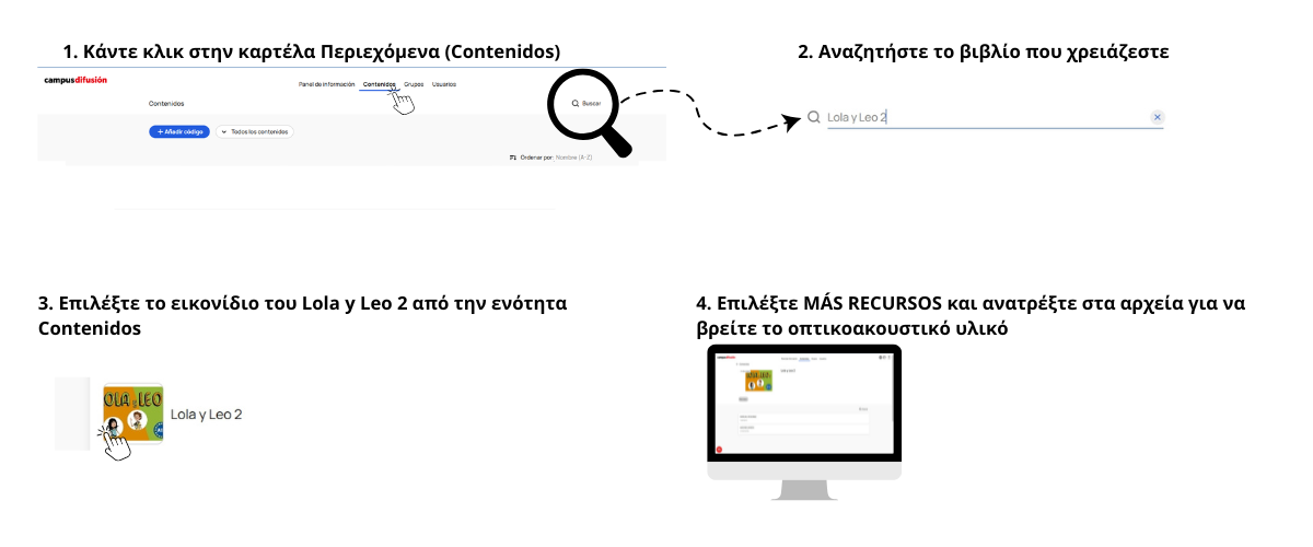 Τα ακουστικά αρχεία και τα video για όλα τα προϊόντα του Lola y Leo 2 Libro del alumno.